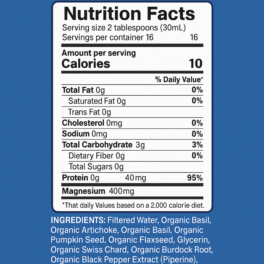 Apoye su cuerpo de forma natural con Magnesio Líquido 400mg. Esta fórmula a base de plantas promueve el equilibrio, la calma y el bienestar diario. Su forma líquida de rápida absorción lo hace ideal para adultos y niños.