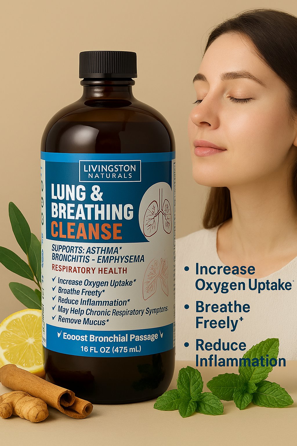 Lung & Breathing Cleanse es un poderoso suplemento herbal diseñado para apoyar tu sistema respiratorio. Ya sea que enfrentes asma, bronquitis o congestión crónica, esta fórmula natural a base de plantas ayuda a facilitar la respiración, reducir la inflamación y mejorar la capacidad pulmonar.